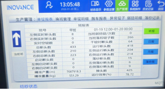 | 单锭检测系统是一套旨在解决传统纺纱车间核心痛点的综合性智能化解决方案,它通过为每个纱锭安装“神经末梢”,将生产管理从依赖人力的被动响应,转变为主动、精准、预测性的数据控制模式。 单锭检测系统由四个紧密协同的层面构成,形成一个从感知到决策的完整闭环: 1. 感知层:锭位智能传感器 这是系统的“神经末梢”,负责实时捕捉纱锭的细微变化。 核心技术:采用非接触式检测技术,如红外光电或电磁感应原理,对锭速、捻度、断头、弱捻、空锭、坏锭等状态进行毫秒级监测; 2. 传输与执行层:可视化报警与本地控制 这是系统的“神经网络”,负责将感知到的信息快速传达给执行者。 多级报警网络:通过不同颜色的指示灯(锭位、导轨、塔灯)实现分级报警,工人可快速发现问题锭位。 本地控制盒 (T-box):每台设备配备的中央控制盒,用于管理传感器、执行报警,并可通过触摸屏进行参数设置和状态查看; 3. 监控层:中控软件与数据平台 这是系统的“智慧大脑”,负责数据的整合、分析与上层管理。 实时数据监控:提供实时生产信息,如断头、弱捻、效率等。 历史数据分析:记录并分析生产数据,生成报告,识别“问题锭子”,实现预测性维护。 远程访问:管理者可通过电脑、平板或手机远程查看生产状况,支持多设备连接和远程技术支持; 4. 应用层:生产管理优化 这是系统的最终价值体现,将数据转化为实际的降本增效。 分工优化:明确分工,挡车工专做接头,清洁、挂粗纱由其他人负责,提高效率。 降低消耗:断头自停减少粗纱浪费和回花,降低胶辊、胶圈等器材消耗。 提升质量:消除绕花现象,改善纱线条干和棉结,提升纱线质量。 ![]() ![]() ![]() |